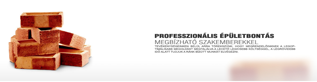 Cégünk vállalja. épületek szakszerű lebontását kézi és gépi erővel példáúl daruval és hidraulikus ollóval is rendelkezünk. Így a bontott építőanyagot bontás közben tudjuk osztályozni, takarítani, raklapozni, költséghatékonyan elszállítani, esetenként értékesíteni, vagy bontás után a megtisztított és osztályozott építőanyag újra felhasználható.